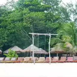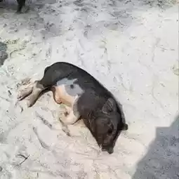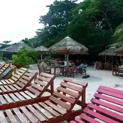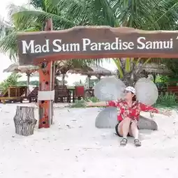 Koh Madsum is an island with a highlight: lots of pigs that we can feed. The pigs will come together. There are big pigs and little pigs. They are very cute.