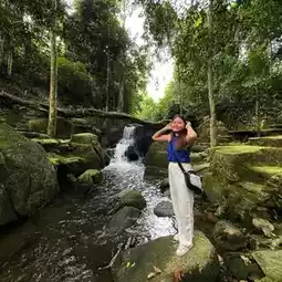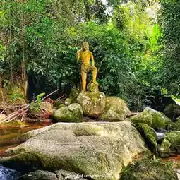 The waterfall is not very big, but the highlight is that there are many statues, such as dancers, hermits, giants, and others. It looks goosebumps. Come during the rainy season. Algae and moss grow on the statues. It looks fresh and beautiful, blending in with nature. It is a beautiful and unusual waterfall.