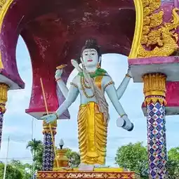 Phra Sangkachai, a large statue, standing out in the middle of the water and with a beautiful lotus church in the middle of the water. And there are many other interesting points. The temple is very shady.