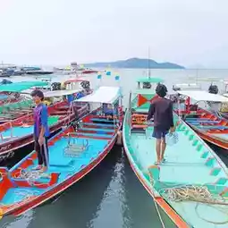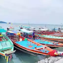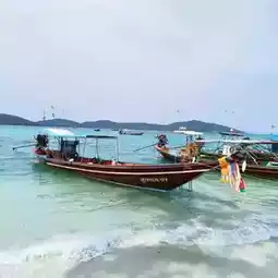 The sea water is crystal clear and the sand is fine. The fee to get to the island is 50 baht per person and includes 1 bottle of water. We took a long-tail boat from Thong Krut Pier for 30 minutes.