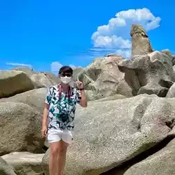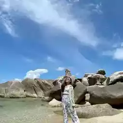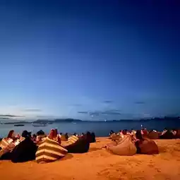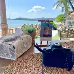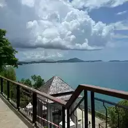 I have a Koh Samui trip to share. For this trip, we went in early May. We started by flying from Don Mueang to Koh Samui Airport. Then we took a bus for about 90 minutes to board a boat at Donsak Pier. We took a big ferry from Seatran (I highly recommend choosing Seatran only because the other one almost made us miss our flight). Then we went to Nathon Pier on Koh Samui. The journey was quite long, but I must say it was worth it. The next morning, we went to Route Cafe, Wat Phra Yai, Had Ta Had Yai Beach. In the evening, I recommend walking around the Fisherman's Village and chilling out while watching the sea and the light show at Coco Tam's. I must say that it was really amazing. It was so beautiful, the weather was great, and the view was amazing. But it filled up quickly, so you have to make a reservation. We went before 5:00 PM, so we got a great seat... If you've never been there, you have to try it at least once. 😊 #KohSamui