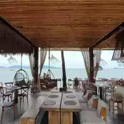 A very popular cafe that anyone who comes to Koh Samui must stop by. The cafe is located near the Bo Phut Walking Street. The shop is decorated in a Balinese style to please those who love taking pictures. Every corner is beautiful. The lighting is also very beautiful. The shop is open-air, no air conditioning, and you can sit and enjoy the breeze. You can sit and see the sea clearly. There are many menus of food and drinks to choose from. The price is a bit high, but with a view like this, it is worth it.