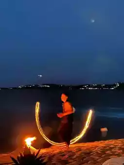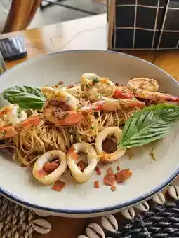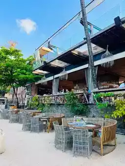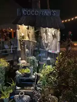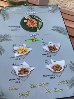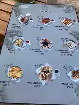 - Coco tam’s bar is the lower part by the beach. This part has a lot of drinks. Savory food has pizza, cold cuts, salads, and snacks such as grilled pork, grilled meatballs, and French fries only.