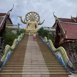 Wat Phra Yai Koh Fan, a beautiful temple that is one of the most popular check-in points, stands out with the "Big Buddha" or "Phra Phuttha Khodom", which is a golden yellow Buddha statue standing tall on a high hill. It is a Buddha statue in the Mara-Vijaya attitude. You have to walk up the stairs to pay homage. At the top of the Samui attractions, you can see Bang Rak Beach and Bo Phut Beach. The 360-degree view is very beautiful. When you visit Koh Samui, don't miss paying homage and asking for blessings. #Beautiful temple #Koh Samui #Don't miss the merit-making line.