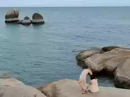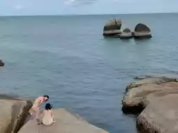 In the middle of the sea, there are 2 rock formations that have emerged. They are three-layered. This is because during high and low tides, the rocks at the bottom are black, while the middle is white. The top layer is a natural brown rock. In the middle, there is a small sandy beach and a shrine to the grandparents. At this point, there are trees to block the sun for sitting and relaxing. The sea is beautiful, the water is clear, the air is fresh and the wind is cool. Another spot is a natural pool. When the tide is high, this spot is full of water. When the tide is low, it is a beautiful pool with clear water. You can go down and take pictures of the rocks.
