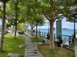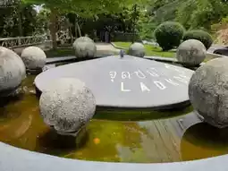 There are officers from Samui Municipality to provide advice. There are places to sit and relax, shade trees, a high square concrete pavilion, and a fountain on a stone pedestal that says Lat Koh Viewpoint.