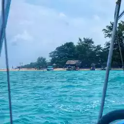 You can travel by chartering a long-tail boat or a speedboat, but we chartered a long-tail boat for 1,500 baht, staying for 4-5 hours, and taking us to Koh Tan. However, Koh Madsum has many beautiful photo spots. The fee to enter the island is 50 baht per person, and there is 1 bottle of drinking water provided.