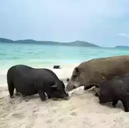 A small island full of pigs coming out to welcome us, having fun feeding the pigs and taking pictures with the cute pigs.