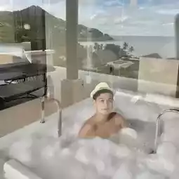 Our room this time was the Grand Ocean View Pool Suite, 1 King, a 128 sqm room with a very large area and separate areas. The bathtub is also very large, with a view of the sea while soaking. There are 2 washbasins with vanity tables on both sides. The toilet is also on the other side.