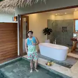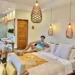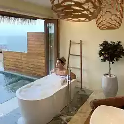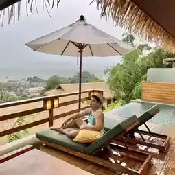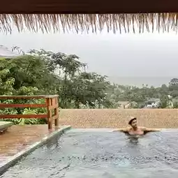 Newly opened Bali-style cottages in Samui, beautiful photos, sea view, private pool, affordable price, focusing on nature-friendly design. This resort allows us to feel the meticulous design. Every detail in the room, whether it's the swimming pool, kitchen, bed, all use premium grades, no less than expensive luxury resorts.