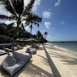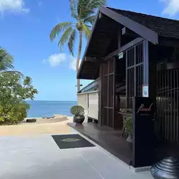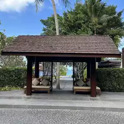 🙂 I walked from the room across the bridge, went down to the beach, passed the security guard, and immediately greeted me. I passed the swimming pool and saw the staff at the pool bar talking to other guests. I stopped at the sofa by the beach and turned to see the staff at the pool bar next to me. Hello, is there anything I can help you with? I was just in the pool.