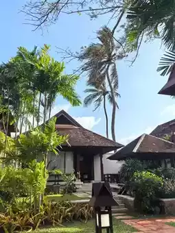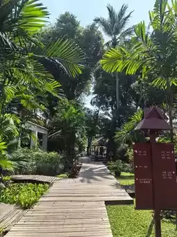 But once you get here, you'll find that the scenery is unique It's a typical Southeast Asian holiday style, the whole hotel is shaded by green trees, all are two-story Thai-style buildings, very close to the sea The hotel's breakfast is also good, with the sea breeze, it's really beautiful