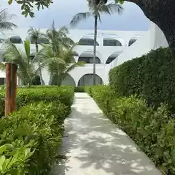 #summerdream SALA Samui Chaweng Beach Resort This accommodation has a distinctive curved design, beautiful and unique. The white building has a semicircular curved wall resembling the shape of a moon, making the building look soft. The furniture uses white and wood, making the room look warm. The accommodation here is divided into two sides: the side that is the building facing the garden, relaxing under the shade of the trees, and chilling. And the side that faces the sea, next to the sea, you can walk to the beach. Some rooms have their own swimming pool. I personally like this place a lot. I was impressed that there are many beautiful photo spots. If anyone goes to Koh Samui, try to stop by.