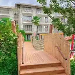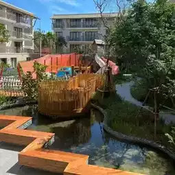 The lobby uses a lot of wood, which is very environmentally friendly and beautiful. The main pool is beautiful and suitable for parents and children to play in the water and take pictures, and it is also a parent-child and pet-friendly hotel, suitable for a whole day at the hotel for a few days without leaving the house.