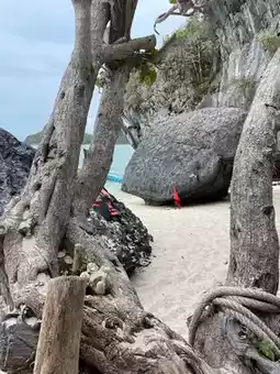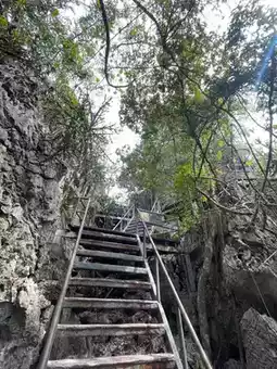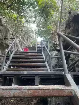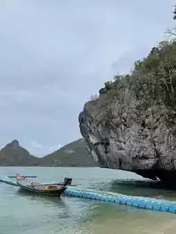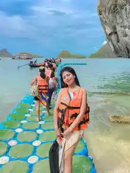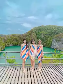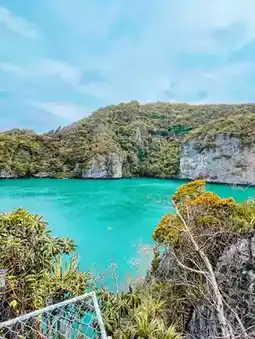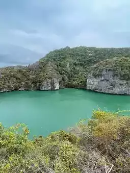 The emerald green sea has two viewpoints: the lower and the lower levels. It takes about 10 minutes to go up and see the view. The inner sea is a relatively round basin similar to a small lake, surrounded by limestone mountains in a circle until it becomes a basin with water inside. The width is about 250 meters in diameter. At first glance, it looks like a lake, but it is not completely closed because there is a channel that connects to the outside sea (the Gulf of Thailand) that surrounds the limestone mountains. In some places, it is clearly a cavern, which is caused by some limestone being washed away and dissolved by water, creating caves and channels for seawater to flow in and out of the basin. This geographical feature makes it look like there is a sea within the surrounding mountains, which is the origin of the name of this place, the inner sea. #Angthong Islands #Inside Sea #Mae Koh Island #trip free accommodation