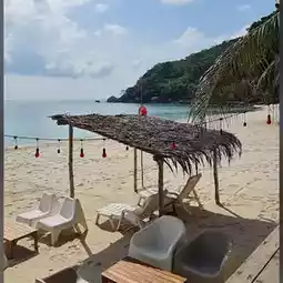 Rating: 10/100. This beachfront café will make you gasp with delight at first sight. It's right in front of Hat Yai, with a beautiful sea and fine, white sand. The atmosphere feels like being at a foreign beach. The beach is full of foreign tourists sunbathing on the beach. They even sell beach towels for those without equipment. There's a cafe at the entrance, offering affordable prices and delicious, rich, aromatic coffee.