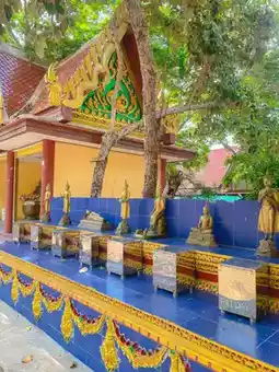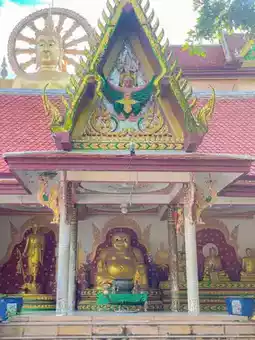 The highlight of Wat Phra Yai is that inside the temple is the Big Buddha or Phra Phuttha Khodom, which was built in 1972. It is the Buddha in the Mara-Vijaya posture, which is the largest Buddha statue in the South. It is 5 wa 9 inches wide and 6 wa high. It is decorated with golden yellow tiles all over, making the golden Buddha visible from afar.