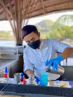 🧊 Blue Monkey 🐒 is a Cafe', Bars and Restaurant of Sheraton Koh Samui Resort. The decoration is beautiful... at the level of a 5-star hotel 🌟, the service is good as expected from Marriott Bonvoy, but the good atmosphere doesn't make guests feel tense that it's a 5-star hotel!