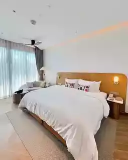 The hotel rooms are spacious and bright, with unique designs. From the soft beds to the high-end bathroom facilities, every detail demonstrates quality. Draw open the curtains, and the magnificent sea view comes into view. The waves gently hit the beach, as if telling the story of nature.