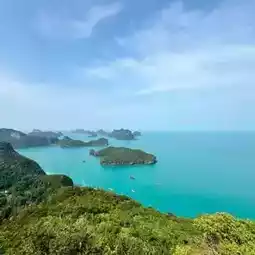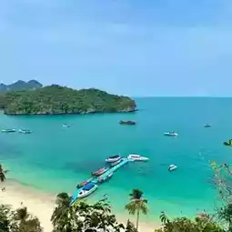 Koh Mae Ko >> This point is the most beautiful viewpoint. But the way up is quite steep. The distance to travel up the mountain is about 1 kilometer. Going up and down for about 1 hour. Along the way, there are shady trees and rest stops at each point before going up to the top of the mountain. The view is very beautiful. It is worth going up. This point is called Pha Chan Charat Viewpoint.