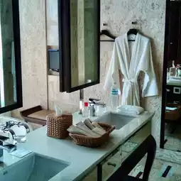 Conrad Koh Samui Hotel, a luxurious private accommodation with a sea view, good atmosphere, beautiful scenery, is a 5-star hotel that you must visit once in your life. Very beautiful, great view, complete facilities such as a bar, spa, drinks, a variety of food, both Thai and Italian food and much more. Each house has a private balcony with a swimming pool in the middle of the sea, a very romantic atmosphere. The reception staff is very good and suitable for relaxation.