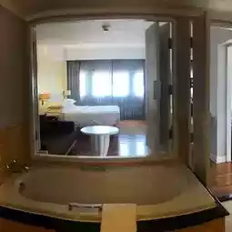 We stayed in a one-bedroom suite, which was spacious and well-divided into a living room, bedroom, bathroom, and a balcony with views of the pool and the sea.