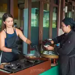 Another charm of coming to relax on Samui is learning to cook 𝘾𝙤𝙤𝙠𝙞𝙣𝙜 𝘾𝙡𝙖𝙨𝙨. May chose the menu Green chicken curry, stir-fried chicken with cashew nuts, and coconut milk bua loy. I tried making them myself and enjoyed them very much.
