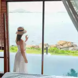 This time, May chose to stay in the 𝙎𝙚𝙖 𝙁𝙧𝙤𝙣𝙩 𝙋𝙤𝙤𝙡 𝙑𝙞𝙡𝙡𝙖 room. It is very spacious. There is a bedroom, a bathroom with a bathtub, a separate living room. There is an outdoor area for chilling out with a private pool, a sea view, a shady atmosphere, very beautiful and worth it. In addition to the private pool, this place also has a communal pool. Chill out and see the panoramic view of the sea. Breathing in the morning air is really refreshing.