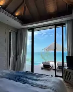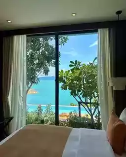 The hotel is on a private island in Koh Samui, a super cool "one island, one hotel" kind of place. The way to get to the island is special. You can take a boat, or if it's low tide, you can just walk from the beach. It's only 200–300 meters from the main island, and it feels like an adventure.