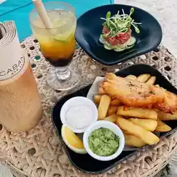 This is the newest beach club. The atmosphere is very nice. It's beautiful. There are many menus to choose from. There are drinks and desserts. 🦞🍝🍣🍔🍕