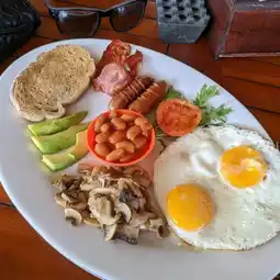 But I mainly came here for the Deep fried Bananas which were tasty, but could use a bit more ice cream and/or sauce. Beautifully decorated restaurant near dream beach. It was empty when I visited so service was fast. Staff were polite and there was a cute dog.