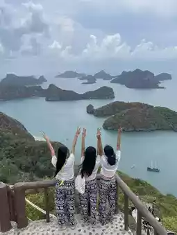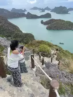 * This viewpoint offers a 360-degree view of Ang Thong National Marine Park, with small and large islands with strange shapes lined up in the middle of the blue sea.