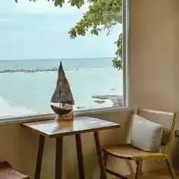 There are many seats, both air-conditioned and outdoor by the sea. Every corner is very beautiful for taking photos.