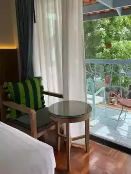 The Mexican-inspired interiors add a vibrant touch, creating a cozy and inviting atmosphere. The room also includes a stylish closet and a lovely balcony with a table and two chairs, perfect for enjoying a morning coffee or evening relaxation.