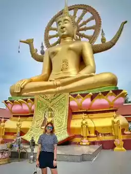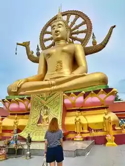 Protected by 2 seven headed Naga (serpents) running the length of the steps, the statue stands magnificently on a platform overseeing all around. From here you'll see fantastic views of the Bo Phut bay area and across to the neighbouring island of Koh Phangan.