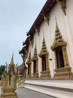Although some of the buildings like the ubosot are in traditional Thai architecture, most of the complex is build in Thai-Chinese style. The Wat Plai Laem temple houses two giant, colorful statues that will immediately catch the eye.
