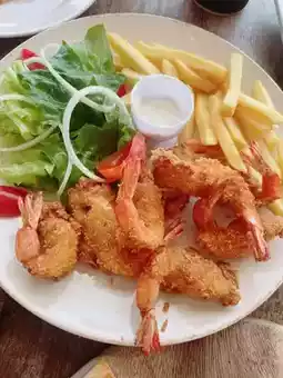 🐻 Hello, today I will take my friends to review a restaurant in a resort on Koh Samui. This restaurant has a good atmosphere, located by the sea. There are many types of food to choose from. There are both seafood menus and European food.