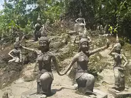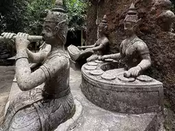 The garden was founded in 1976 by a local durian farmer named Khun Nim Thongsuk, who began building it at the age of 77. Until his passing at 91, he dedicated himself to sculpting this magical place with statues depicting Buddhist figures, animals, celestial beings, musicians, and even himself and his family. His vision was to create a space of reflection and serenity.