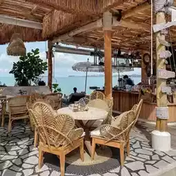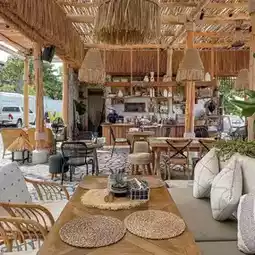 ร้านตกแต่งด้วยวัสดุธรรมชาติ โทนไม้และสีเอิร์ธ เหมือนยกความบาหลีมาไว้ที่สมุย มีโซนให้เลือกนั่งทั้งโต๊ะปกติ เก้าอี้ชายหาด หรือจะนั่งเบาะบนพื้นดูพระอาทิตย์ตกก็ได้