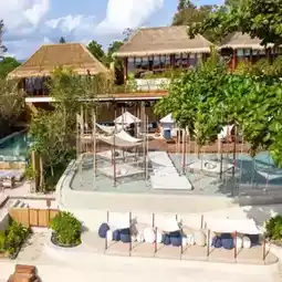 Secluded cliffside villas with private infinity pools and panoramic views. Eco-friendly design, spa, wellness programs, library lounge.