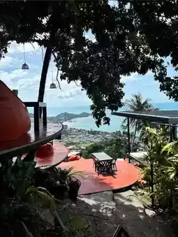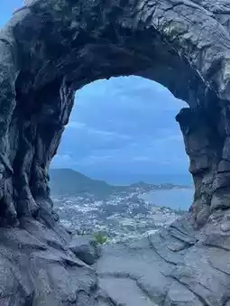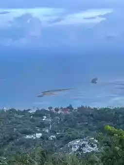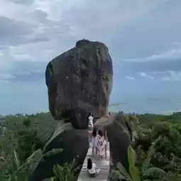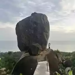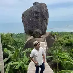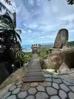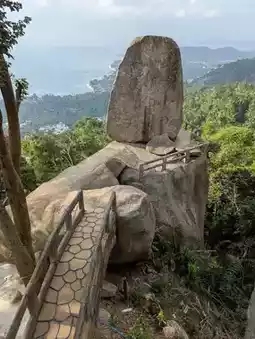 A really beautiful lookout, not to be confused with Overlap Stone #1. This is where you'll find the hand lookout and one of the balancing stones. While some have pointed out the construction, this doesn't hinder the view, which is really spectacular, overlooking the south east coast of the island. Don't forget to explore, as there are other viewpoints around the other side of the bar. It is a short, steep walk, but very doable for most people if you take your time. The drive/ride up is quite steep in places, but not too bad overall. Those not comfortable on a scooter should ride up as far as they feel comfortable and then walk the remainder. It starts to get busy around 9.30am, but if you arrive before then you'll likely have it yourself. There are clean toilets at the top as well.