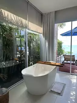 Imagine soaking in a bathtub while gazing at the sea dotted with yachts, or spending leisurely hours by the pool during the day. This truly feels like paradise 🌴, doesn’t it? 🥹