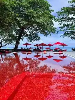 📚 It happened to be World Book Day, and we made a serendipitous stop at The Library, Koh Samui’s legendary beachfront boutique hotel. Famous for its blood-red sea-view pool and artistic, literature-themed design, it was a striking sight.