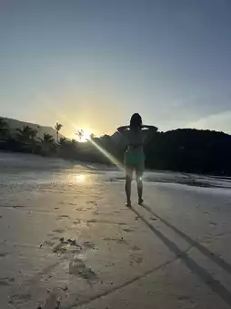 Beautiful view to watch the sunset on Koh Samui. It is a public sandy beach. You can enter for free. At the entrance, there is a shop owned by a kind man selling fried spring rolls, coconut ice cream and other foods.