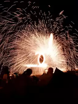 • Don’t forget to bring a camera or a phone with night mode, as the fast-moving flames can be tricky to capture but make for stunning shots