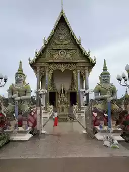 The atmosphere is peaceful and shady, with a cool sea breeze throughout. It's perfect for making merit or finding a tranquil retreat on a relaxing day. Plus, you'll leave with plenty of stunning photos. If you're visiting Koh Samui, don't miss this spot.