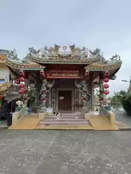 • The temple grounds feature old pavilions with a blend of Thai and Chinese architecture, adorned with intricate designs.