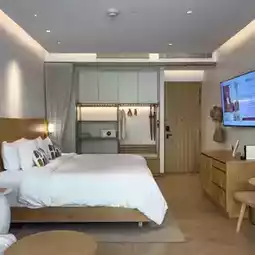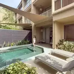 The interior of the room is decorated in a minimalist style that is very appealing, with a swimming pool