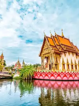 Wat Plai Laem, also known as "Wat Laem Suwannaram," is a renowned and exceptionally beautiful temple on Koh Samui, Surat Thani Province. The temple's distinctive feature is its harmonious blend of Thai and Chinese architecture, with a prominent sacred object situated in the middle of a large pond, giving the temple a mystical and enchanting atmosphere.