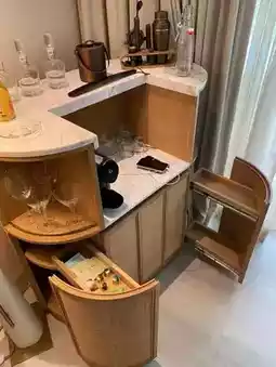 The drink bar at the lobby is stunningly decorated in an Art Deco style.